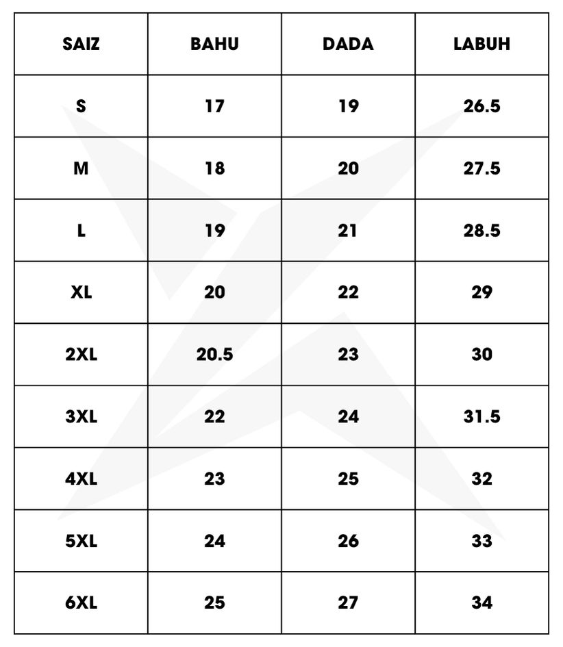 SIZE CHART: